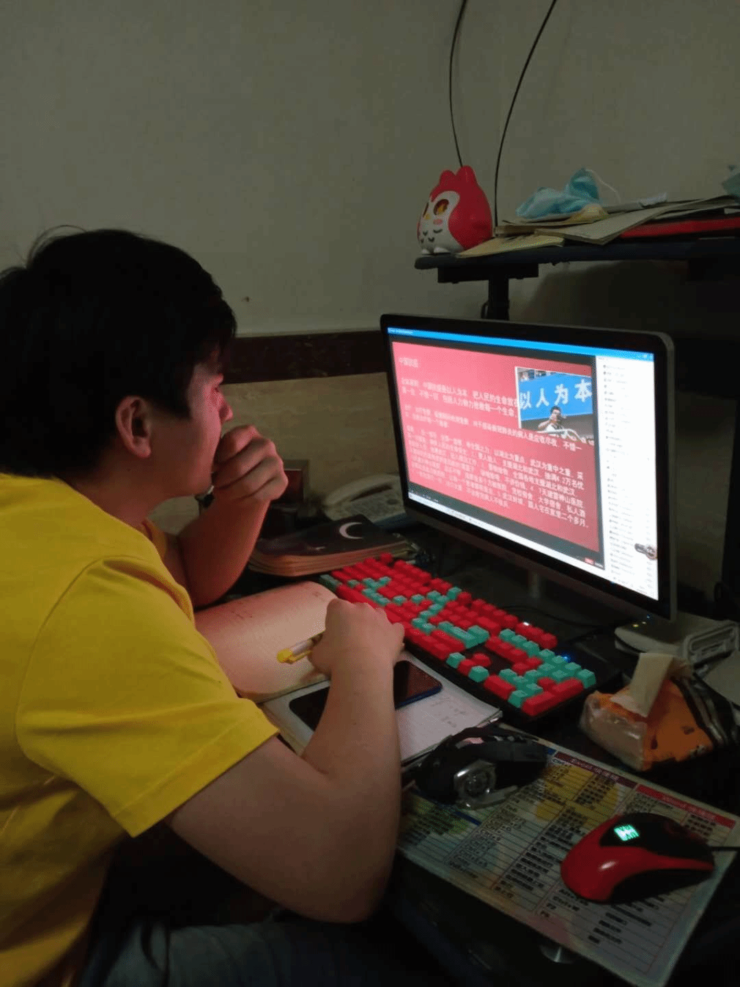 19:00,随着鲜艳明亮的中国红PPT出现在云端,本次讲座正式开始。邹老师一开场就结合自己丰富的教学经验、疫情期间的亲身经历、全球疫情的数据资料等内容通过逻辑严密而又不失幽默风趣的言语引出了今天的主题——“对比抗疫之路,重燃爱国情怀”。邹老师首先从时间主线入手,对比了我国与西方主要大国在不同时间段对待抗击新冠肺炎疫情的态度,其次详细阐述了我国根据疫情发展采取的一系列有力措施和取得的实际成效,展现了我国一切以人民群众生命安全为根本的大国形象,听得学员们心潮澎湃,倍感自豪。