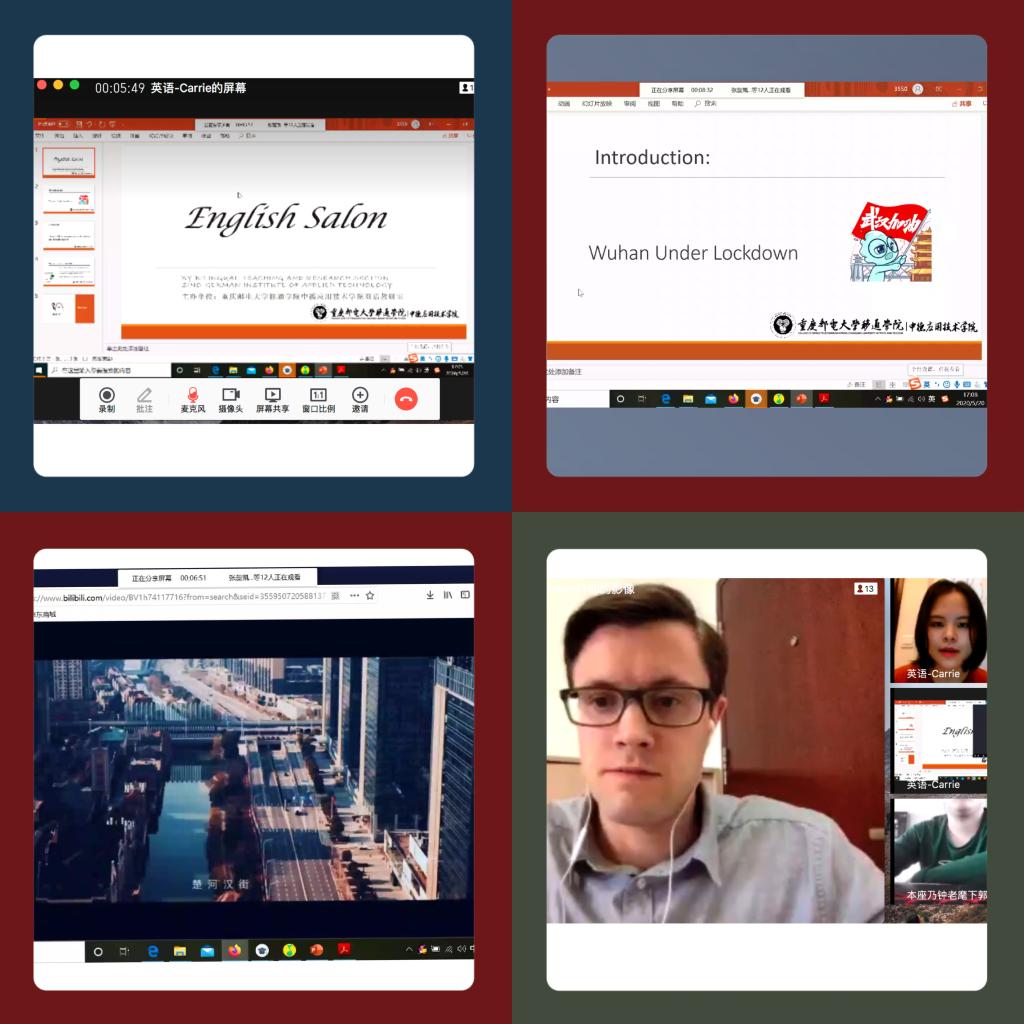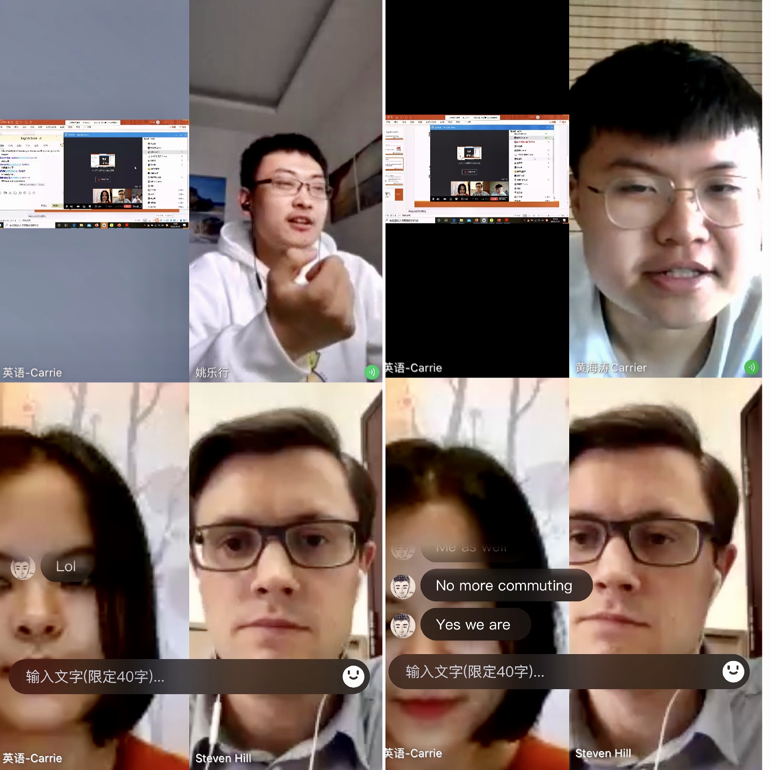 本次线上活动以“疫情中的你我”为主题,活动伊始,主持人钟佳利老师以QQ屏幕分享的方式为师生们开启了一场别样的“云端”交流。为了营造真实的英语交流环境,我们有幸邀请到国际友人Steven Hill。