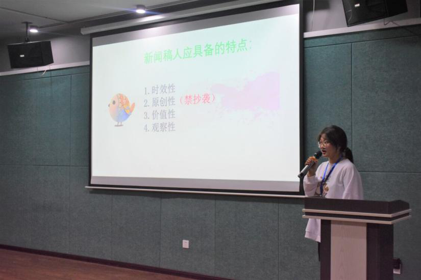 会议刚开始,主讲人就提出了“投入越多,收获越丰”的主题,这是引领干事们思考收获和投入的关系。接下来开始讲解有关新闻稿的各个知识点,包括精简凝练和引人注目的标题、形式多样的导语、主干突出的内容、充实严谨的正文和升华主题的结尾,同时还讲解了新闻稿的种类以及每种新闻稿要注意的地方,最后强调了新闻稿的内容要做到主题明确、真实准确、客观公正。