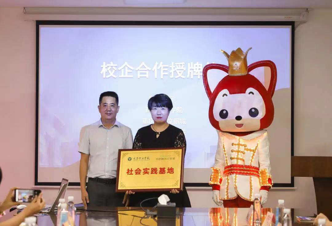 随后,副校长周伟与重庆融创文旅城人力行政总监邹佳文以及校长助理陈仲华与成都融创文旅城人力资源经理王莹就双方共建“社会实践基地”、“人才培养基地”进行相互授牌。
