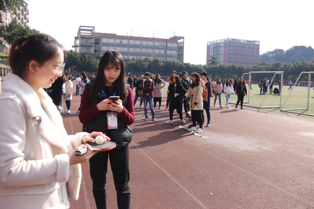 乒乓球在拍上胡乱地窜着,活像个调皮的小孩,逗着你,却抓不到。为了不让拍上的乒乓球落地,参与者们夸张的动作,僵硬的表情令人忍俊不禁,围观者看得兴致勃勃,好不有趣!