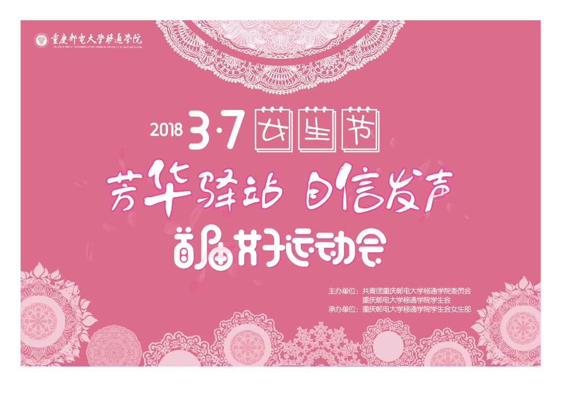 “暮春三月巫峡长,皛皛行云浮日光。”2018“芳华驿站·自信发声”女生节开幕式暨首届女子运动会于2018年3月7日16点在校足球场上如期举行。以自信为主题的女生节活动一经推出,受到了女同学们的热捧,首届女子运动会累计报名参与达到600多人次。本次活动我们一改往日的风格,用运动的方式,给女生带来由内到外的改变。