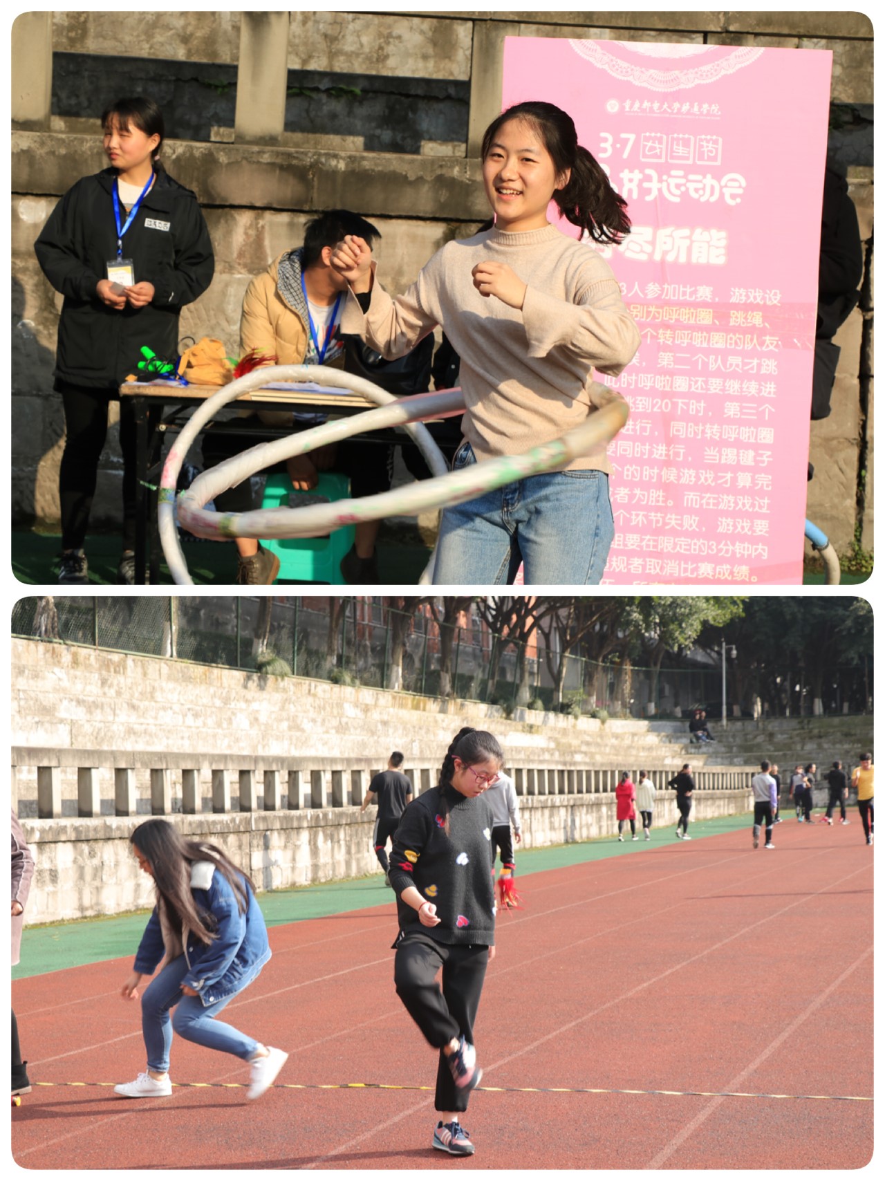 阳光洒落在操场上,观众们与参与者一同感受趣味运动的魅力。学会自信地去挑战困难、超越自我是女子运动会送给女生们最好的女生节礼物。