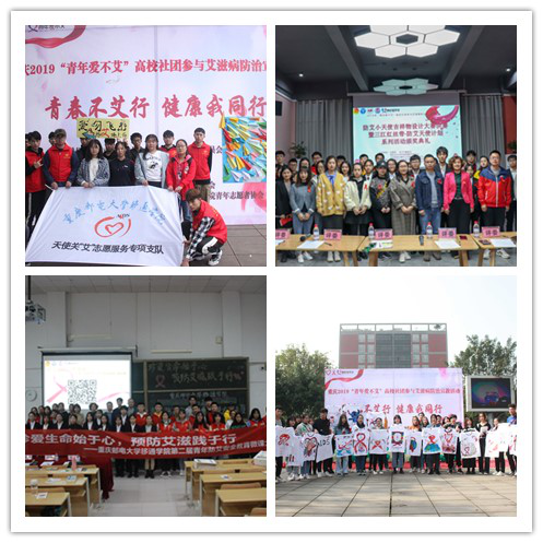 2019年11月29日,由重庆市合川区疾病控制中心与共青团重庆邮电大学移通学院委员会主办,青年志愿者联合会、大数据与软件学院青年志愿者协会、外语语言文学系青年志愿者协会、淬炼商学院青年志愿者协会、通信与物联网工程学院青年志愿者协会共同承办的以“宣传呼吁关爱艾滋病人”为主题的“三江红丝带·防艾天使计划”防艾系列活动成果风采展在我校黄桷树广场圆满举行。