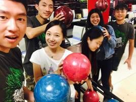 晚上,我们相约一起感受美国人的游戏“保龄球”大家都玩的很陌生,但是大家玩的如此开心。
