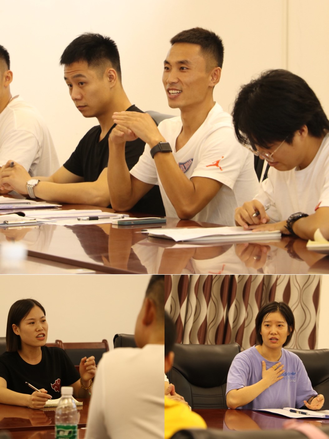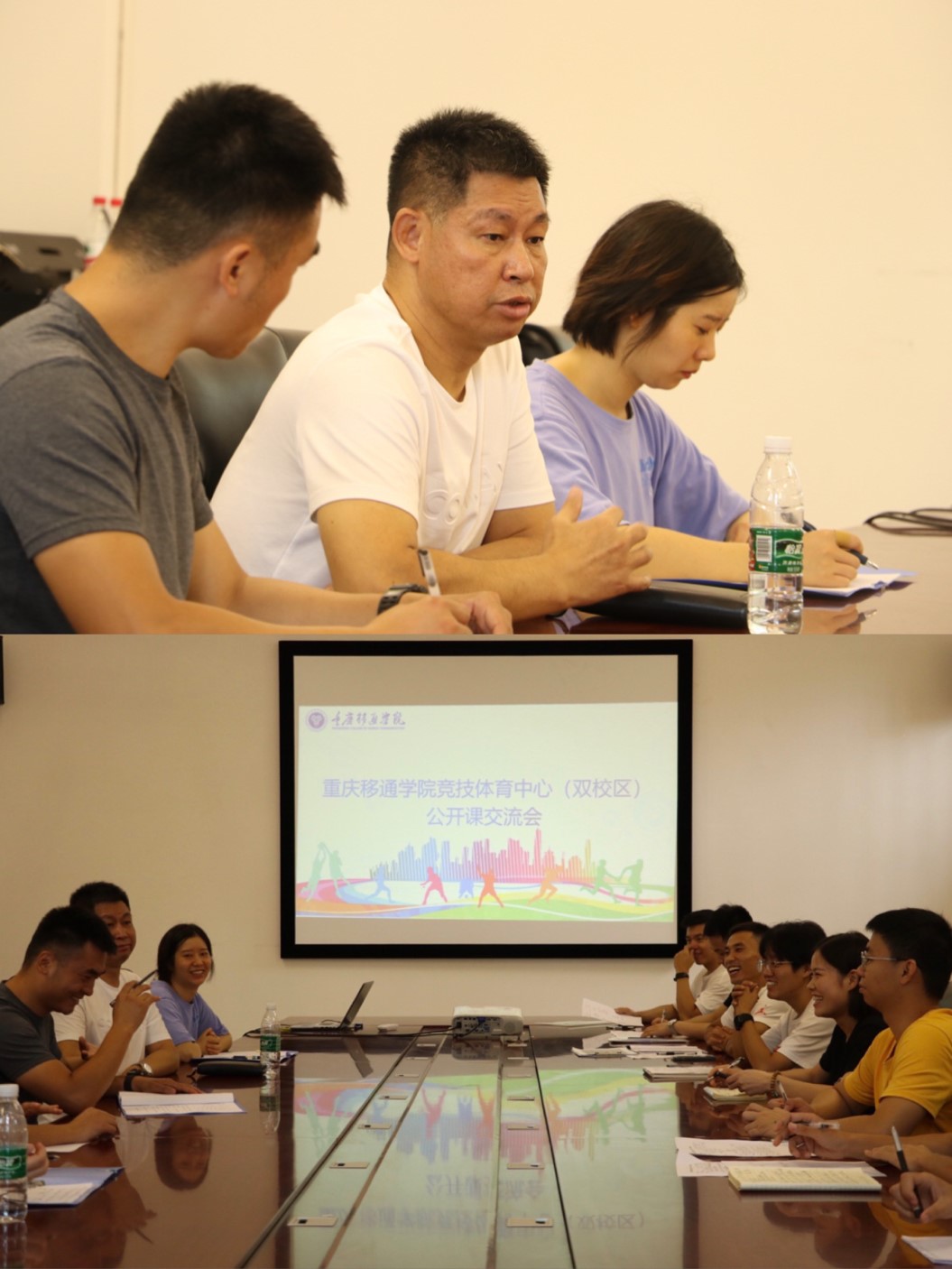课程结束后,綦江新教师与合川资深教师们于梅若书院207会议室进行了课后交流会。会上刘玉林主任指出,新进教师要对这段时间的学习实践进行充分的吸收、回顾、总结。要积极响应国家争做“四有”好老师的号召,扎实专业技术,注意课堂氛围,规范自身行为,契合学校发展方向努力提升自我,进行多方面多元化的发展。刘主任表示,今后竞技体育中心将会在双校区定期或不定期地进行线上与线下交叉的交流融合,使双校区能够共同发展,共同进步,共同提升。