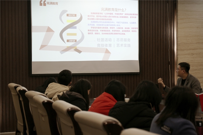 穆部长首先从宏观上解读了完满教育的含义,他谈到,完满教育是学校“心系中国根、怀揣世界梦”探索创新的素质教育大平台,是学生从校园人成长为社会人的重要路径,是学校紧扣立德树人根本任务的生动实施。继而介绍了学校完满教育的发展历程及完满教育与商科教育、通识教育、专业教育之间的联系。
