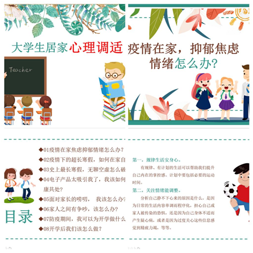 当情绪之主人,做迎光而生之人。5月8日,我院通过钉钉课堂开展大学生居家心理调适培训,围绕同学们居家疫情期间,在学习、生活等方面出现的焦躁情绪、电子产品依赖、亲子关系紧张等问题进行疏导,帮助同学们排解不良情绪,缓解开学前的紧张、焦虑情绪,以更好的心态投入到即将返校的学习、生活中。