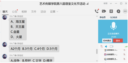 寝室文化、发挥创造、增进友谊。5月16日,我院第六届寝室文化节正式开展,通过飞花令、线上K歌以及寝室安全知识竞答等环节,来展示寝室精神面貌。良好的寝室文化是培养学生的行为养成和健全人格的重要方面,本次寝室文化节,既为同学们提供了一个相互交流和发挥自我特长的机会,也为发挥同学们的创造力和增强室友之间的凝聚力和友谊搭造了一个平台。