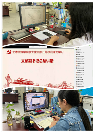 关注时政热点,争做时代先锋。5月25日,艺术传媒学院学生党支部开展以“关注时政热点、争做时代先锋”为主题的政治理论学习,深入学习《2020年政府工作报告》,了解我国国家建设取得的成就、出现的问题、遇到的困难,鼓励青年学生党员努力学习专业知识,将专业知识同实际相结合,将青春之我、奋斗之我融入到中华民族的伟大复兴当中。学习《习近平总书记在湖北省考察新冠肺炎疫情防控工作时的重要讲话精神》,了解党在内忧外患中诞生,在磨难挫折中成长,在攻坚克难中壮大,引导青年学生党员同志要不忘初心、牢记使命,扛起责任、经受考验,关注时事政治、关心国家和社会发展趋势,积极响应党和国家的号召,做一名合格、优秀的共产党员。