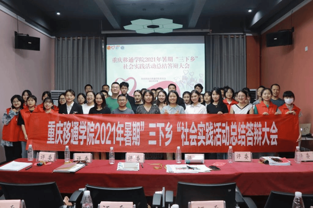 为深入学习习近平新时代中国特色社会主义思想,培养学生家国情怀和实践能力,让移通学子能在社会实践中学党史、强信念,努力成为担当民族复兴大任的时代新人。搭建各队伍成果分享、总结实践的平台,促进我校实践育人工作再上一层楼。9月15日下午2点,2021大学生暑期“三下乡”社会实践活动总结答辩大会在别都书院四维空间成功举行,校团委副书记谢银平老师、学院学工副院长以及校院两级志愿服务版块指导老师作为评委出席本次大会。