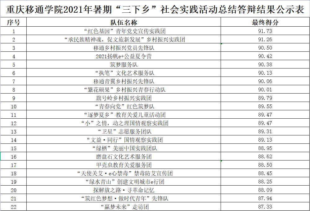 结合答辩得分和材料得分,22个队伍综合得分公示如下: