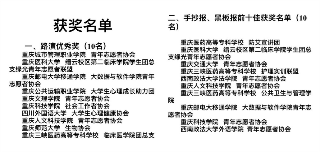 12月1日,以“社区动员同防艾 健康中国我行动”为主题的重庆市第32个“世界艾滋病日”主题宣传活动暨重庆市2019年“青年爱不艾”艾滋病防治宣教公益创投项目大赛颁奖典礼在重庆医科大学缙云校区举行,吸引众多高校与社会志愿者参与。