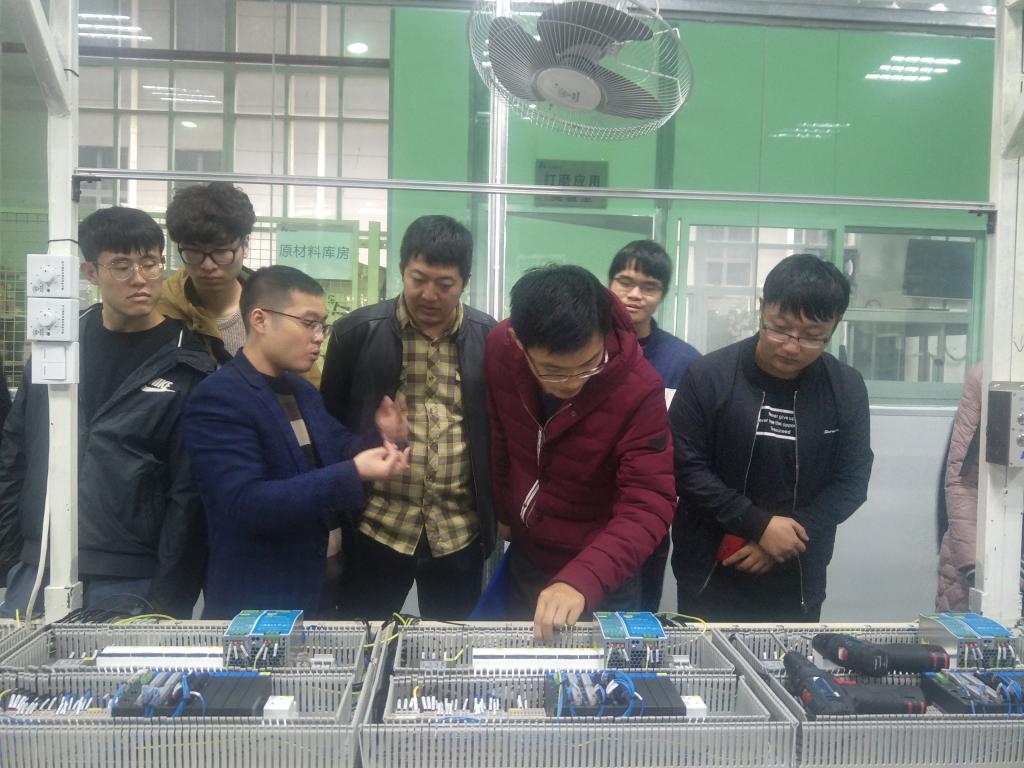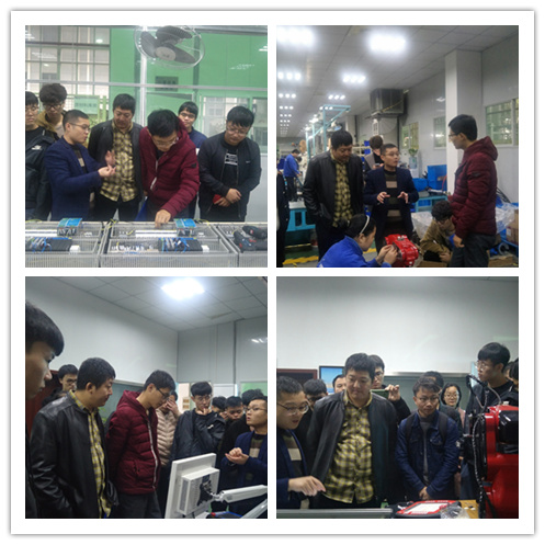 黄学彬部长首先通过视频和现场讲解为师生介绍了公司发展概况、科技产品、核心技术、市场发展情况和独特的企业文化等,娓娓道来,给师生们上了生动的一课。随后全体师生按照规定安全通道进入企业参观,沿途黄部长逐一介绍了智能视觉识别设备、智能装配设备、自动打磨设备、自动化生产线及部分生产工段的情况,耐心解答了师生们的相关问题。最后,带领全体师生参观两江机器人展示中心,全面解重庆市机器人工业的发展状况,人才需求与智能机器人产业的发展趋势。