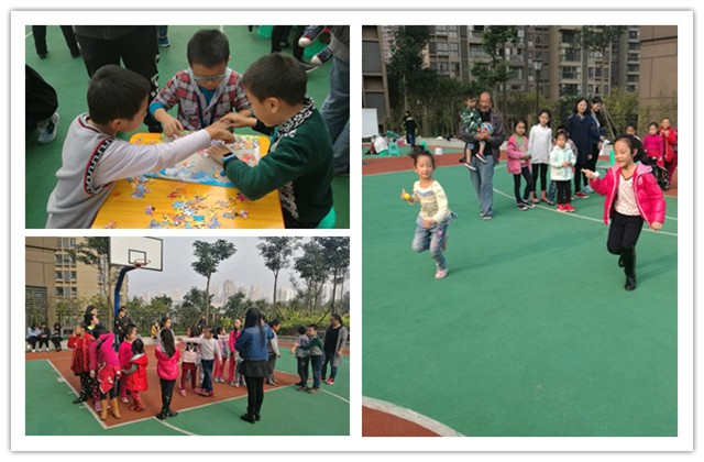 第一轮游戏中,我的眼睛被蒙住,在蒙上眼的那一刻,我清晰地感觉到自己的心是悬空的,像是在海中迷失方向的一叶扁舟,随浪翻滚,无法安生。突然,有双小手牵住了我的手,柔软脆弱,但却给我带来了无与伦比的安全感,让我在黑暗中找到了依靠。她在我耳边小心提醒:往左边走、往右边走一点点,跨过去、绕过去,慢点别摔跤!她引领着我在黑暗中摸索,我俩手牵着手走过一个个弯道,跨过一个个障碍,逐步走向终点。第二轮游戏,小朋友自由组队,完成拼图游戏。游戏过程中,她仔细地找着一块块拼图,焦急时也会挠挠头,捶捶胸,不耐烦一阵儿后,又会埋头加入战队继续战斗,脸上认真的神情成为一道最美的风景线!第三轮他们继续进行团队游戏,在轻扯即破的纸轮中跑向终点,小朋友参差不齐的身高,手脚的不协调,都成了这个游戏他们所要克服的难题。眼前一个个的意外状况,都让我为每个小朋友捏了把汗,不过在团队的共同努力下,他们终究克服了重重困难,到达了成功的彼岸。最后一个游戏用筷子夹乒乓球,既要保证速度,同时也要保证乒乓球不掉落在地,这对于小朋友来说存在一定难度。但这并不妨碍他们奔向成功的步伐。