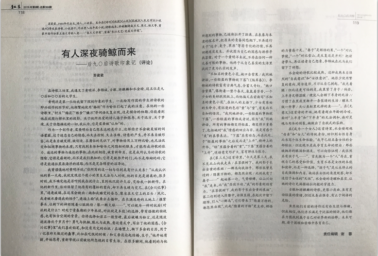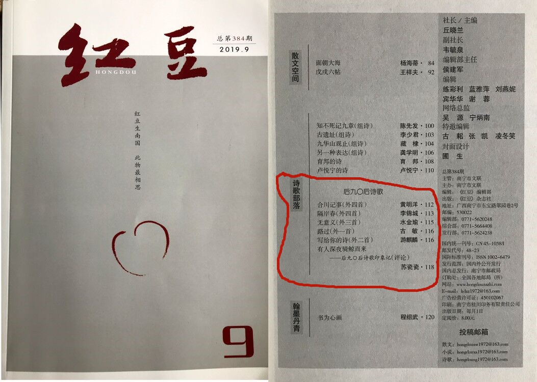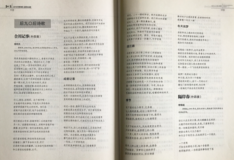 最新出版的中国著名期刊《红豆》杂志,投下了一枚“集束手榴弹”,我校创意写作学院五名作家班学生和他们的指导老师苏瓷瓷,集体“承包”了一个栏目“后九0后诗歌”,引得诗歌界人士一致惊呼!