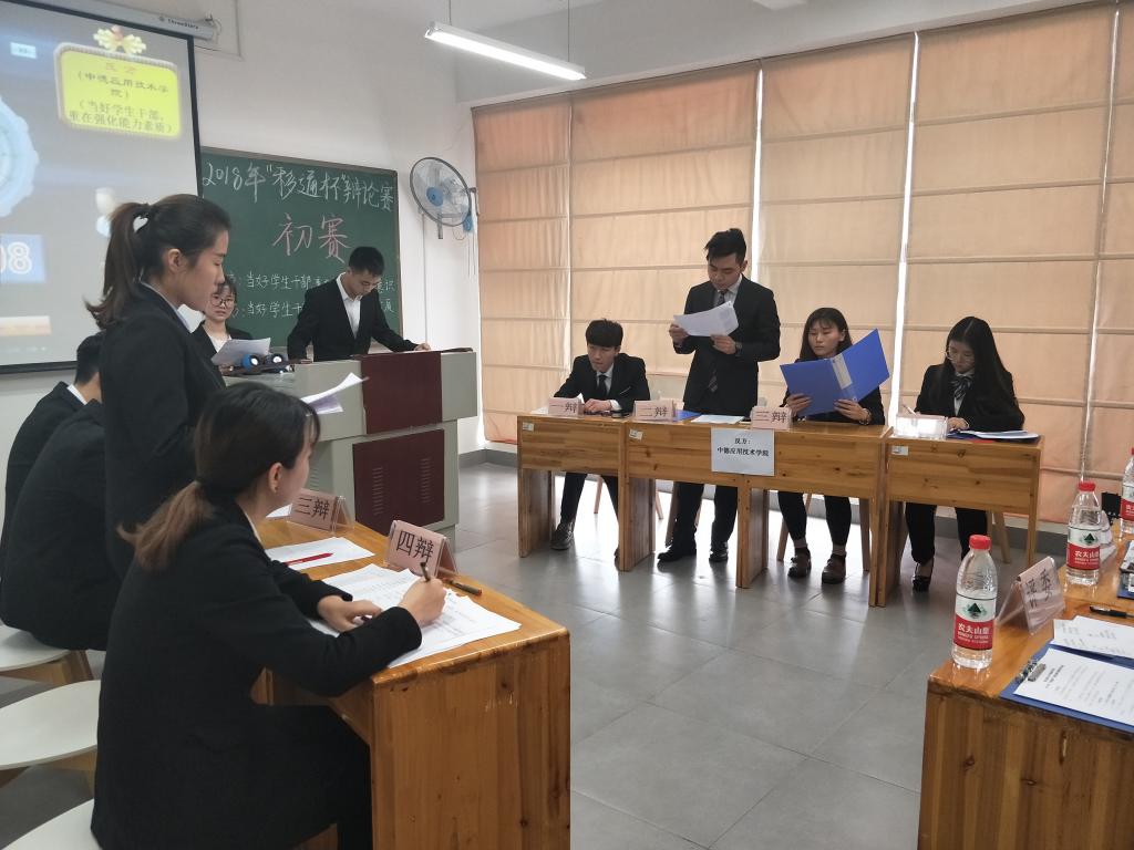 为锻炼我校学生的思辨能力和合作能力,提高同学们的思维反应能力、沟通技巧,通过辩论赛这一良好的沟通平台,展示各个院系学子辩论场上的非凡色彩,2018年3月26日中午12:30,由校学生会学习部举办的2018年“移通杯”正式拉开了帷幕。九个院系代表队气宇轩昂、势如雷霆,他们相遇在爱莲书院,三天九场酣畅淋漓的辩论,为我们带来了精彩的视听盛宴!