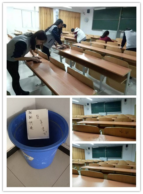 这天晚上,我注意到空间里很多人特别是外校的同学在转发“爱护教室桌面环境,珍惜清洁阿姨劳动成果”的说说,清洁阿姨要把学校所有教室桌子上的字清理干净,几百个教室,上万个座位,从早到晚,擦了十几分钟都还没有擦完一张桌子,清洁阿姨年纪很大了,做这种工作很是吃不消。我看了后想到了平时自己教室的环境,想到了学校清洁阿姨辛勤忙碌的身影,深有感触。于是我将截图发到团支部群里,希望能号召团支部爱护教室环境,也更希望能号召团支部成员尽出自己的一份微薄力量。但同时心中不免有些担忧,害怕辛苦了一天的团支部成员会拒绝,令我意外的是这对团支部成员的影响很大,大家都表示很赞同,到了第二天,我组织团支部成员进行了教室的清洁活动,对教室的卫生,桌面的笔印划痕等做了彻底的清洁,在清洁的过程中,真真切切的体会到了清洁阿姨的艰辛,清洁一张桌子就会花费很多时间,清洁完后都腰酸背痛,于是我们更想要将号召更多的同学付诸于实际行动。