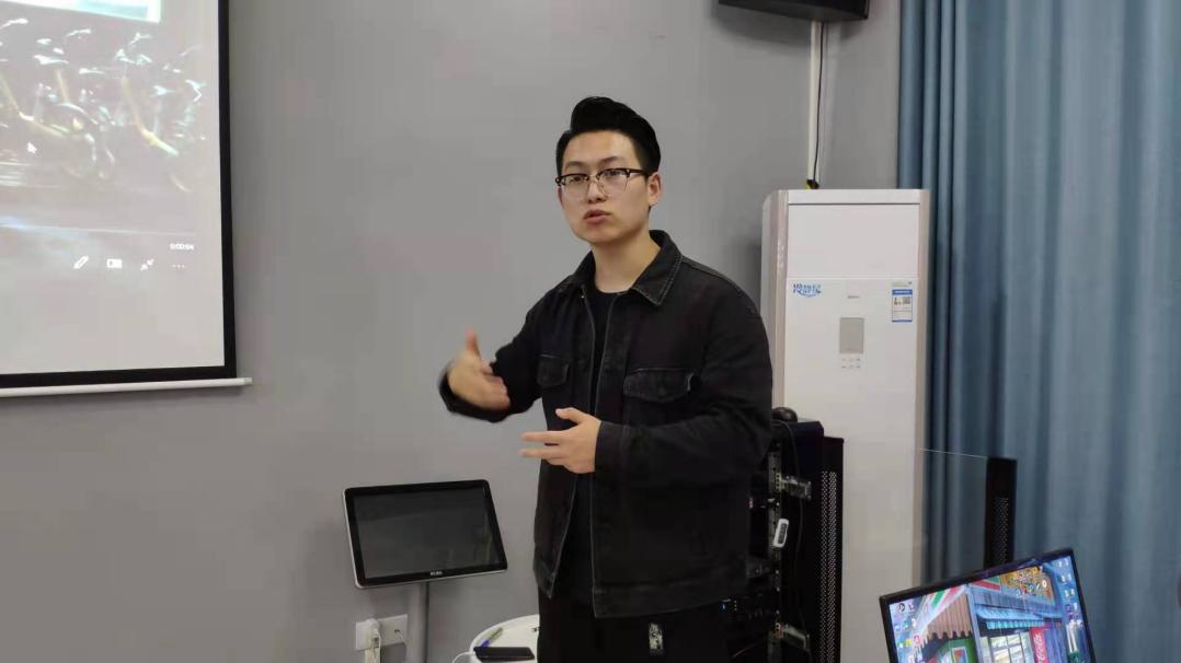活动伊始,梅老师通过经典案例作为此次讲座的切入点,围绕着短视频《梦骑士》,梅宁老师详细地分析了该作品的故事结构、运镜技巧、场面调度、镜头寓意。在解读过程中,同学们积极互动,来自艺术传媒学院2020级广播电视编导专业的赵闯同学问道如果把故事的背景放在校园应该如何处理?