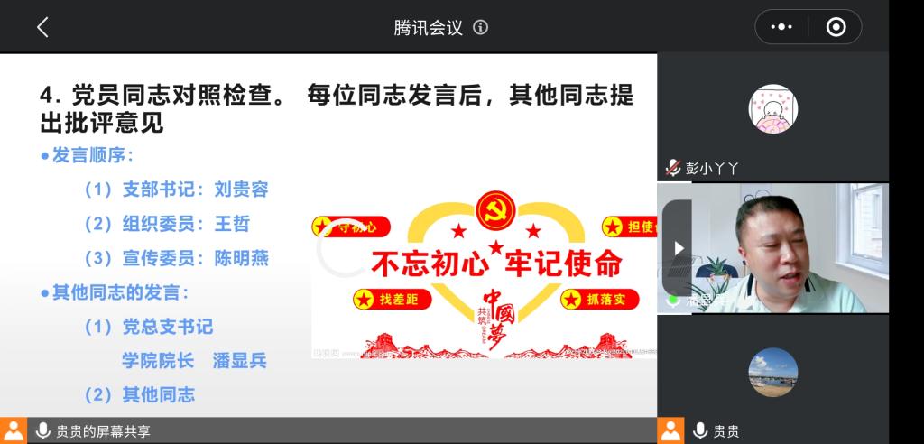 紧接着,党员同志对照党史学习检查要求,每位同志发言,其他同志提出批评意见。刘贵容同志提到自己在党史学习上的时间分配及学习形式还有待增强,工作中要戒骄戒躁,更好地在团队中发挥先锋模范作用。王哲同志提到自己应将党史学习与自身工作相结合,完成本职工作的同事,更好地带领年轻党员同志一同进步。陈明燕同志提到自己通过观看电影、电视剧等方式学习党史,但党史学习的力度有待加强,可以通过学习强国平台多关注国家动态,以更好地提升自己的职称及专业能力。