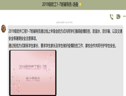 2019级辅导员老师分别召开线上安全主题年级会,同时对同学们的暑期安排做了规划,引导同学们在进行自我安全防护的前提下可以提前去感受和学习求职技巧、打牢技术基础,抓住这宝贵的时间补足自身短板,做好就业规划。
