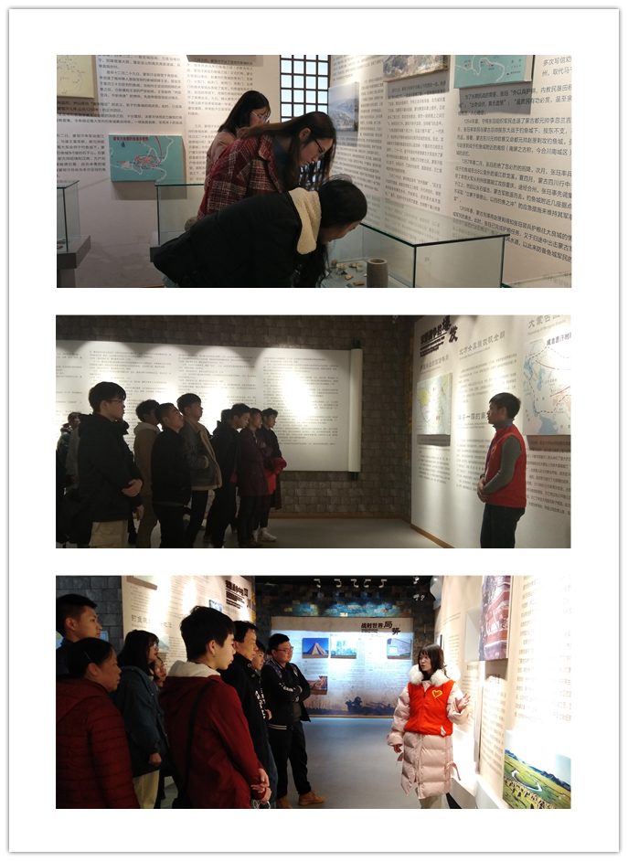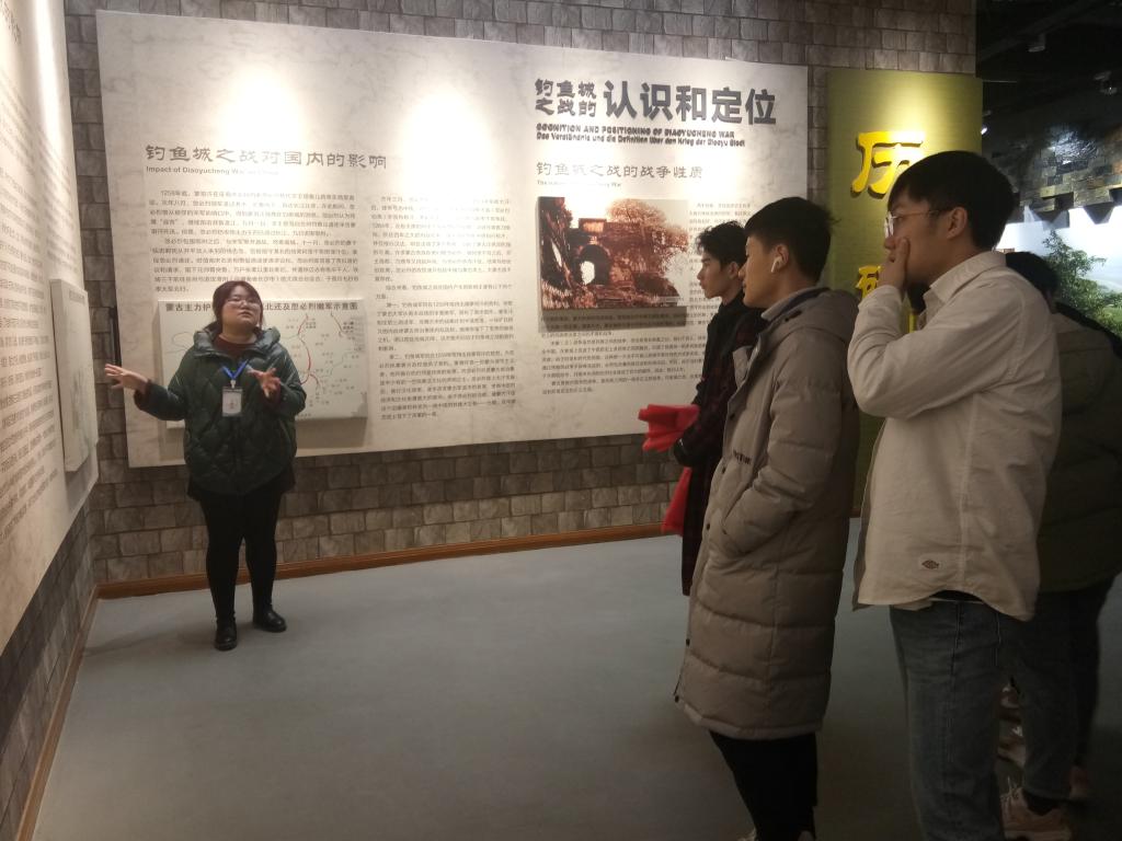 其余班级同学在讲解员的带领下走遍博物馆三层展厅。在一楼序厅中,讲解员为大家介绍了钓鱼城之战的背景、钓鱼城沙盘以及钓鱼城之战的宋蒙两方的主要将领。