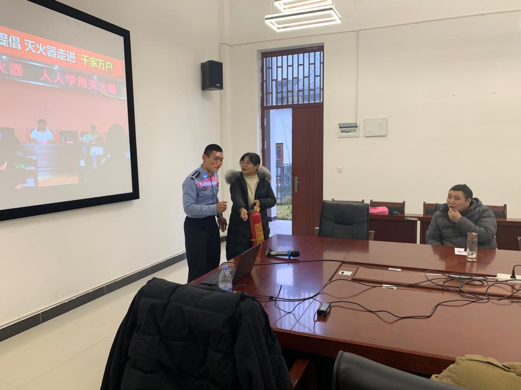 韩鑫沛教官主要从火灾发生的原因、灭火器使用等方面进行了消防安全讲解及演示。首先讲述了火灾发生的特性,从2018消防大数据中可以看出居民住宅火灾高居第一位,原因是EF类(带电类、燃油类)火灾发生时间短、不易被扑灭。韩教官重点讲述了灭火器应注意的问题及其用法,杨佳义老师参与了演练互动。通过本次安全知识学习,提高教师消防减灾安全意识,提升火灾环境下的应急能力及其科学利用身边消防器材进行自救逃生能力。