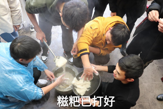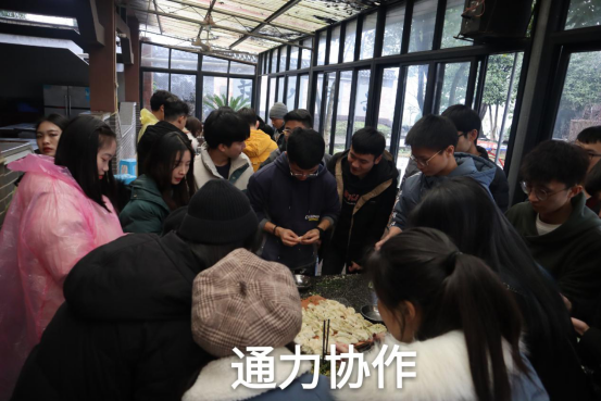 2019年12月21日,剧场学生管理团队新老成员齐聚景香山庄,开展了“戮力同心·继往开来”年度总结表彰大会。成员们到达目的地简单休整后,聚在一起,围在柴火房,各自分工、分组,切不同的菜、备不同的料、包不同馅的饺子、馄饨。时至新年,他们也为来自北方的成员们准备了具有南方特色的打糍粑,包汤圆,团队指导老师还特地从家里带来了精心准备的肉馅汤圆。就这样,大家没有平日剧场管理工作中的严肃专注,更多的是沉浸在欢乐的午餐准备中。其乐融融的氛围也感染着农家乐里其他的游客。