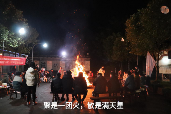 篝火是本次总结表彰大会的高潮,更是泼墨画卷点睛之笔。一堆篝火,一群人围坐,歌曲串烧、搞笑小品、吉他弹唱,其实更像家人的聚会。总说聚是一团火,散是满天星,相聚的缘分始于剧管,坚定的剧管情是每个剧管人忠于剧管的最好印证。晚会最美的莫过于那一团熊熊烈火,寓意着剧管从一而终凝聚的力量,承载的是剧管过去一年火旺的熊心,也是剧管未来不灭的豪情壮志。阵阵笑声就如星火点点,带着剧管的情意飞向浩瀚的星空。团聚的美好莫过于此,因为在一起,就是向往的诗和远方。