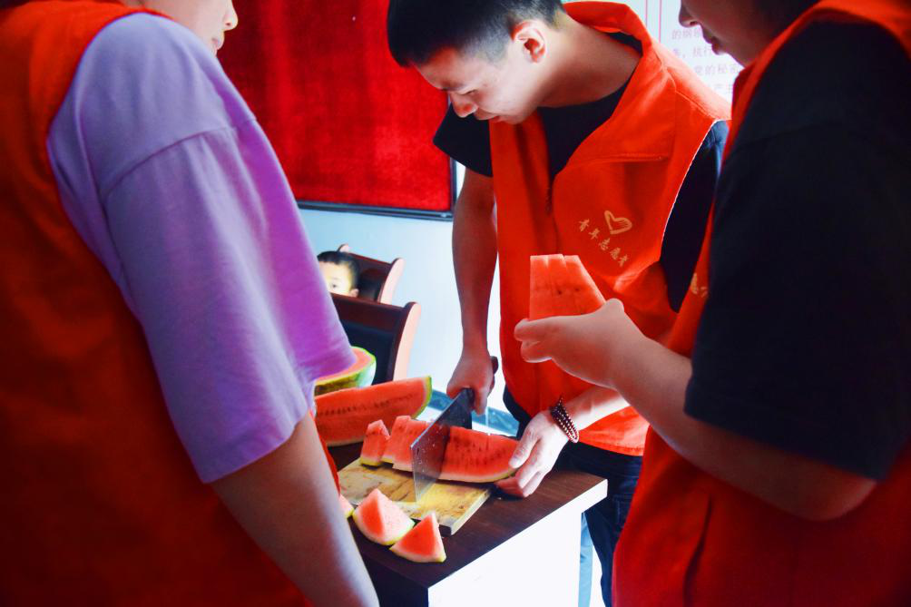 7月5日开展红色宣教活动。e行团成员到达登瀛社区便民服务中心集中参与党史学习和綦江创文知识竞答。在下午16:00邀请社区居民来参加红色观影活动,志愿者们也精心准备歌曲《没有共产党就没新中国》以及集体朗诵《共青团员和少先队员代表集体致献词》两个节目,最后是集中观看红色影片《建党伟业》。由于天气炎热,e行团还贴心准备了西瓜给大家解渴,让炎热的夏天多了一丝清凉和温情。