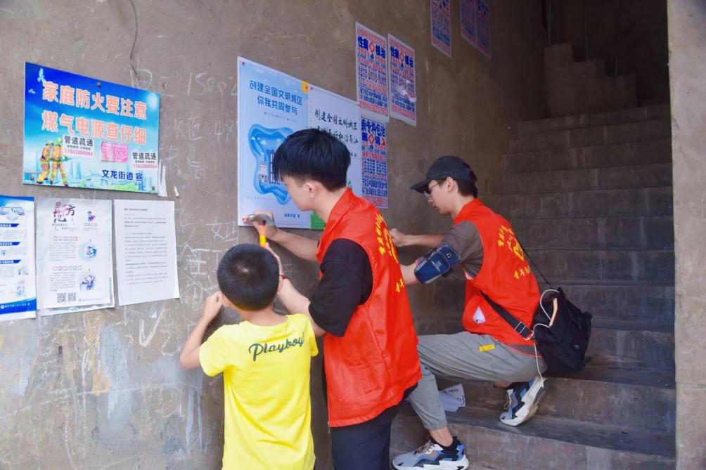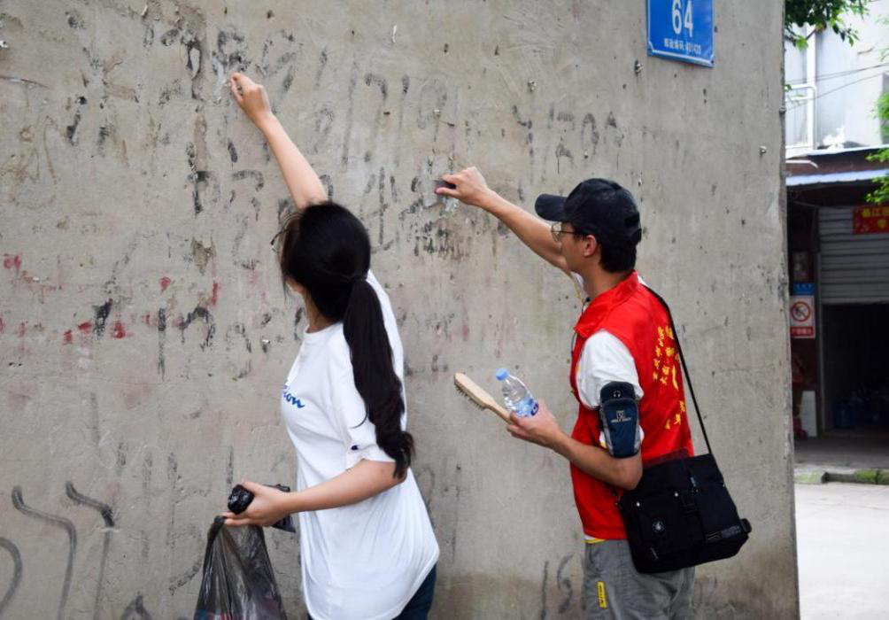 7月3日正式开始三下乡志愿服务。e行团成员以饱满的热情走进社区群众,采用访谈和问卷调查的形式,对綦江创建文明城区进行调研访谈。调研期间,e行团成员发现居民街道楼栋里贴有大大小小的广告纸,随即在调研后,大学生们与社区工作人员组成“护街护巷卫士”,清理墙上的“牛皮癣”广告,共清除“牛皮癣”约200余处,以实际行动为群众办实事、解难事,助力社区治理和文明城区创建工作。