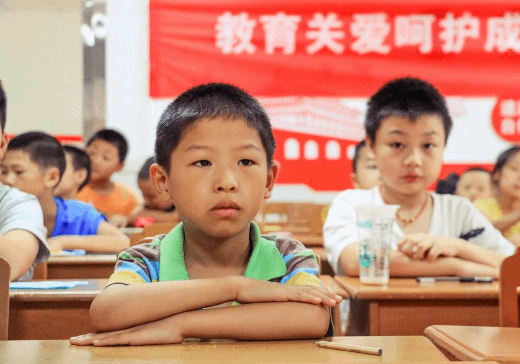 (图为小朋友眼神坚毅,坐姿挺拔,认真聆听志愿者讲解安全知识)