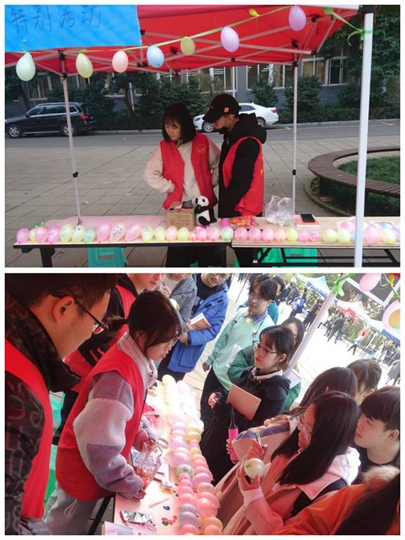 12月11日中午12:00,我院志愿者们在黄桷树广场开展“国际志愿者日”特别活动。通过“击鼓传花”,“气球寄语”等活动形式,不仅使志愿者之间更熟悉,配合更默契,还增强了整个志愿者团队的凝聚力,为以后更好的团队合作打下基础。倡导志愿者们秉承着爱,书写着青春,携手一起,并肩前行。