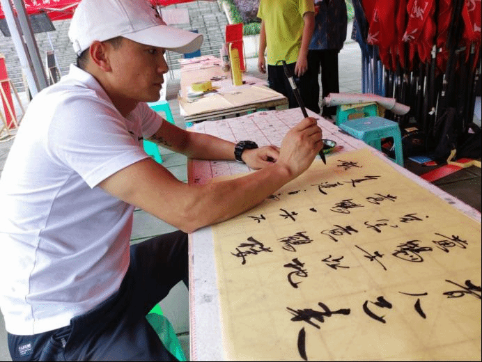 活动过程中,不光同学们积极参与,老师也在现场挥洒自如,在活动中留下一幅幅作品。部分从未接触过软笔的同学,学习了简单的执笔、坐姿的调整、运笔方式后,认真写下了自己喜欢的文章和字体,感受新鲜事物的乐趣。