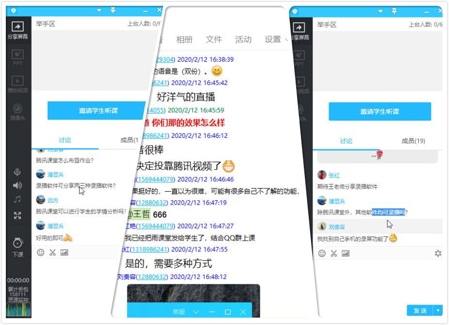 最后,潘显兵院长在直播班级群聊中发言,对全院老师(包括辅导员老师)们积极参与本次培训体验课的热情给予肯定,并鼓励专职教师们要趁热打铁,尽快亲身操作起来,尽快根据自身授课情况,在网络平台建课建班,尽快进行模拟演练,为即将到来的新学期新模式做好准备,以我们的力所能及为战胜疫情做出贡献。