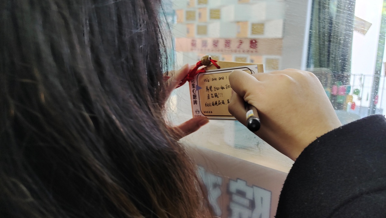“我们狂奔着失去又在相拥着收获。”时光没有影子,涨水一样,缓缓漫过每个人的身体。在花果书院多功能活动室,五十多名同学在此相遇,他们带着自己的心愿与志同道合的伙伴一起交流与表达。穿过熙熙攘攘的人群,将愿望挂在心愿墙上,告别过去的一切不顺心,以新的姿态迎接未来。