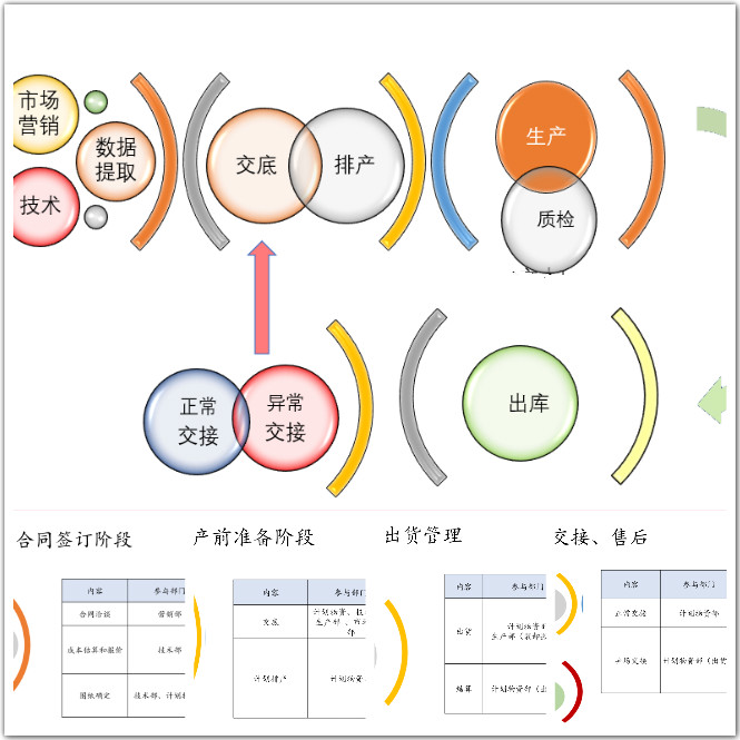 首先,梳理流程,调整组织结构:明确了各部门分工,并增设了计划物资部,协调设计、生产、现场安装等事宜。