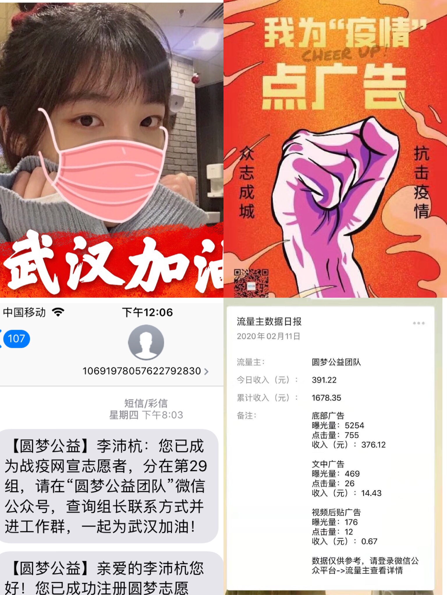 “我是党员,让我来!”“党员站立的位置,就是守护人民的防线!”“疫情在哪里,党员就要战斗在哪里!”作为一名当代大学生,这样的奉献精神时刻鼓舞着我,疫情前期,很多人对新型冠状病毒肺炎不重视的情况在全国各中普遍存在。作为一名积极向党组织靠拢的入党积极分子学员,为了提高群众的防范意识,贡献自己的一份力量,因为在爱莲书院文化推广部从事宣传写作工作,自身在文字编辑和图片制作方面比较擅长,我自愿加入了圆梦公益网上宣传组织,在网上定期发布关于新型冠状病毒肺炎的知识和危害以及防护措施,点击广告流量所赚取的费用都将捐赠给武汉人民。疫情不可怕,只要人心齐。相信在党的坚强领导下,全国人民一定会尽快战胜疫情,中国加油!