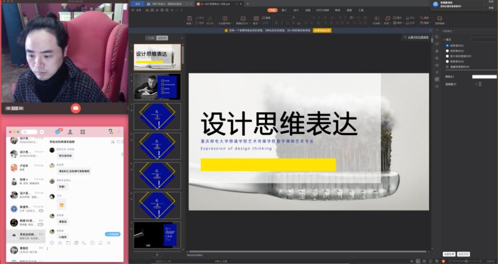 此次网络教学带来的最大挑战,就是打破了原本课堂强互动的教学气氛,师生不能面对面进行交流。在这样的教学环节中,如何才能信息最大化的传递,是每一位教师需要深入思考的。为了能充分做好课堂演示、师生互动,及时了解学生学习情况,以保证课堂秩序和教学成果的完善。艺传老师集思广益,贡献了自己的“在线”秘籍。