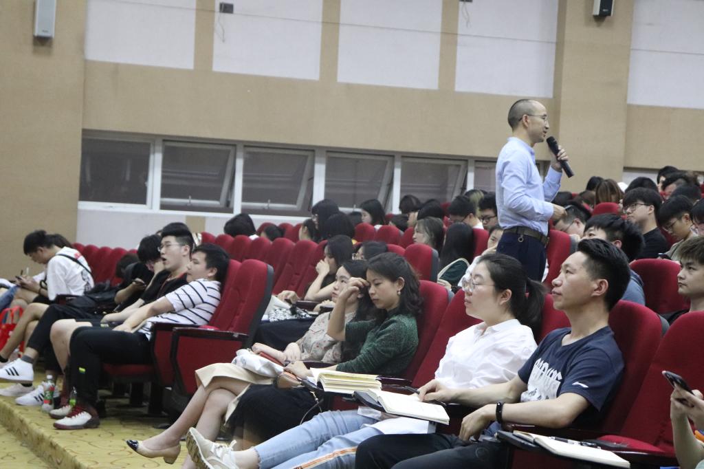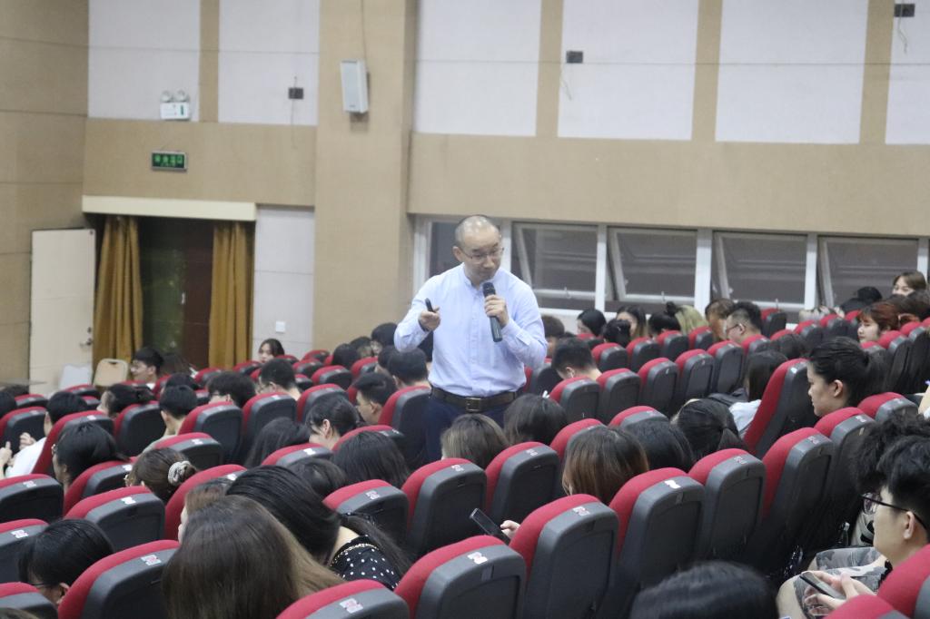 “天下兴亡,匹夫有责”。虽处于和平年代,但若想要成就一番事业,就必须学会担当。人类世界发展到今天,改变世界有三种力量。哥伦布发现新大陆靠的是国家的支持;二战后靠的是像乔布斯这一类企业;到了今天,改变世界的是我们伟大的个体。我们每个人都有自己独特的知识、技能与梦想,如果能够生成团队,我们就团队作战,如果不能,我们也可以独立作战。中国文化最核心的思想是仁,这里的仁不仅是我们常理解的向善,杨老师解释道:“就如我们平时吃的三只松鼠的果仁,为什么叫果仁呢?有人才有果,将一棵小草放在贫瘠的土地上,哪怕没有阳光雨露它也能够向上生长。”杨老师以一个十分生活化的例子,向在场的学生们证明了只要大家积极向上向善,任何时候不要放弃生长,就都可以成为一个伟大的个体,都可以改变世界。