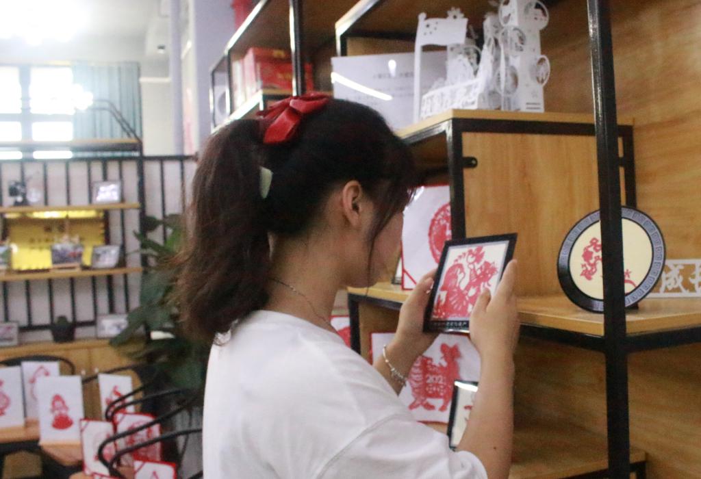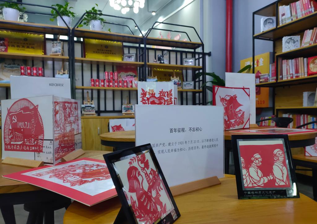 二楼会客厅不同的区域,陈列着不同系列的刻纸。十二生肖系列,生肖齐聚,活泼而生动,再现生命之色彩;疫情防控系列,小爱汇聚,大爱无疆,逆行者是他们最善良的名字;经典名著系列,剪纸涉名著,人物呈缤纷,一个个熟知的人物和故事,尽显眼前;党徽国旗系列,庄重而严肃,历史厚重感让人肃然起敬;还有社会主义核心价值观系列,积极正能量的语录,凝心而聚魂。