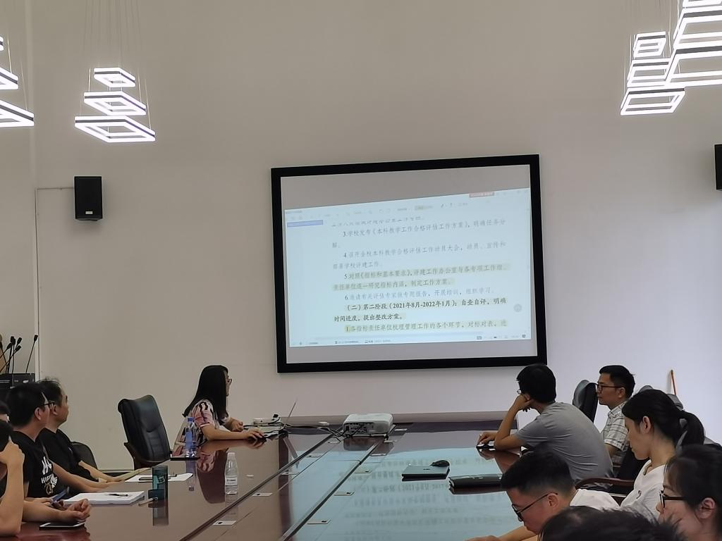 会议第一项议程,党晓圆副院长从学校本科教学工作合格评估指导思想、工作目标及思路、工作进度安排、工作要求、合格评估范围分工及责任单位等几个方面,围绕教学条件与利用、专业与课程建设、学风建设与学生指导、教学质量等多个一级指标展开详细解读。党晓圆副院长重点强调全体教师要高度重视本次合格评估、学习实践主要观测点要求,积极协助和配合做好评建工作,认真、扎实地整改教学中存在的问题,逐项落实,积极改进;在教学工作中要重点加强专业与课程建设,以评估标准提升课程与教学建设水平,推进课堂教学改革,积极使用信息化教学手段,加强过程考核,不断提高教育教学质量,加强保障合格评估的顺利开展,确保合格评估高质量通过。
