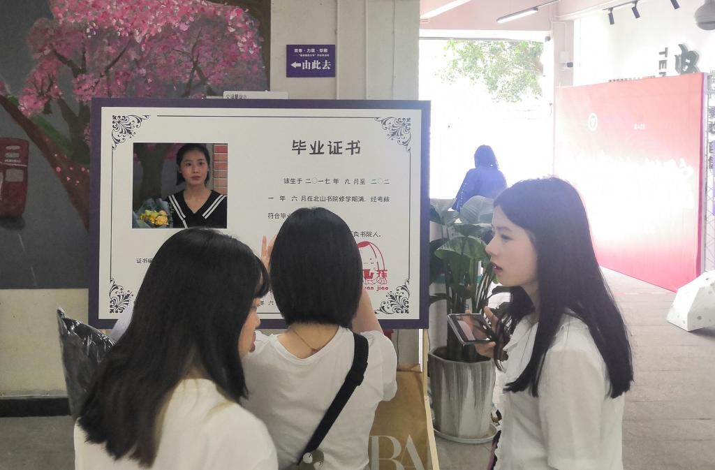 记录·珍藏——书院毕业照,记录自己在书院生活的点点滴滴。北山书院在大厅、主干道设置2021届毕业学子专属打卡通道,供早期离校的学生进行拍照纪念。路过北山,他们频繁驻足在打卡通道,和身旁的好友不断地“321”,定格和书院的时光。