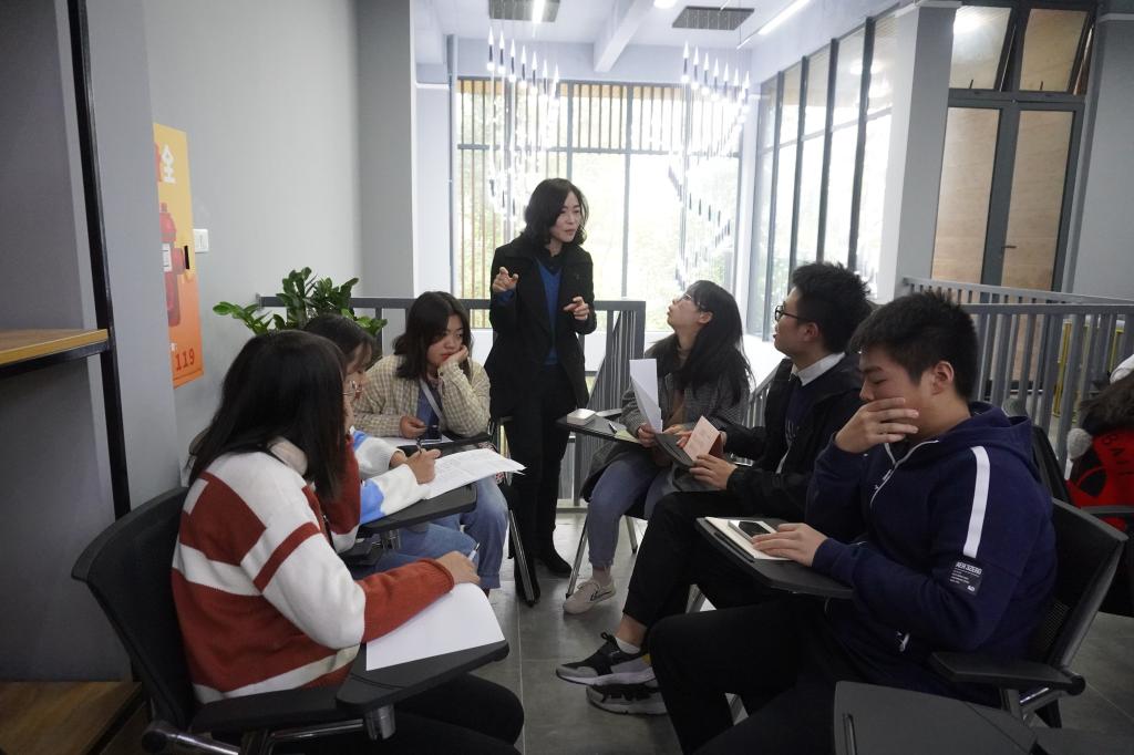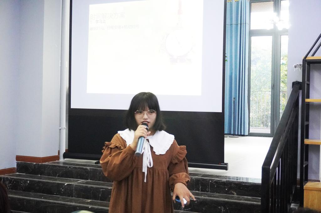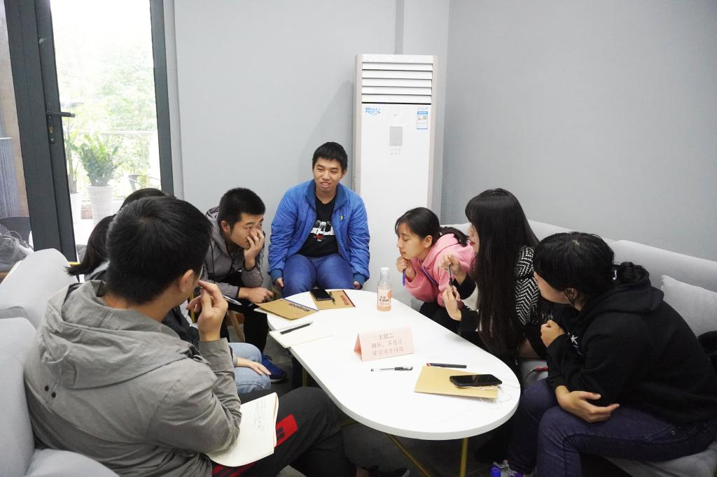 此次研讨课主要以“对话式”展开研讨。由北山书院邀请的淬炼商学院主席代表、铁人三项队员代表、爱心宣传部干部代表等8位优秀学生,对应到《探索成长的秘密》课程的8组同学之中,开展一个优秀学长/学姐对应一组的“一对一”的对话式研讨,几位老师在不同组之间流动引导。8个小组的学生分别就8个主题进行研讨,研讨主题为:破解迷茫与空虚(目标问题)、糟糕,不想学习(学习动力问题)、时间去哪儿了(时间管理问题)、“万人迷”养成记(人际关系问题)、将“铁杵磨成针”(坚持问题)、自律这件事儿(自律问题)、告别压力山大(压力问题)和侃侃我偶像(榜样问题)。