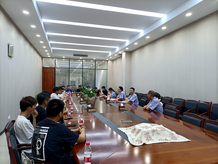 会议伊始,重庆金华电器成套有限公司总经理秦岭先生、技术副总周长英、生产总监高宏林,金华培训学校校长,金华公司营销顾问李新元先生等热情接待了我校师生并进行了亲切交谈。技术副总周长英与金华公司营销顾问李新元先生代表公司对我校师生到来表示热烈欢迎的同时,也向大家详细介绍了公司的发展历程,产品生产与销售,办公环境与发展前景等;我校中德应用技术学院武强义副院长就学校基本情况、育人模式及特色工作做了详细介绍,表示对企业领导高效热情接待工作表示感谢,并希望可以以此为契机,共同探索校企合作新模式、新机制。