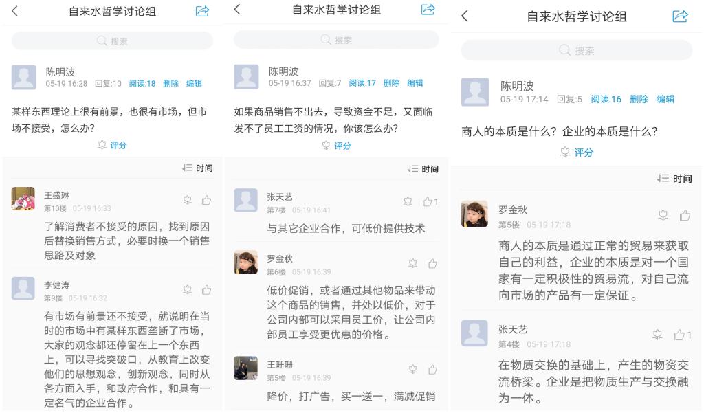 当然,陈老师也结合现代教学手段,让同学们在学习通APP中讨论了那个时代曾经出现而在当今社会仍会面临的各种商业问题,并在探讨的基础上,对松下幸之助的自来水哲学进行了总结:“水管里面的水固然有其价值,然而喝路边的自来水不用付费也不会受到责备,因为水资源相对丰富。企业的责任不正是让世界物资丰富以消除一切不方便吗?” “经营的最终目的不是利益,而只是将寄托在我们肩上的大众的希望通过数字表现出来,完成我们对社会的义务。企业的责任是:把大众需要的东西,变得像自来水一样便宜。”