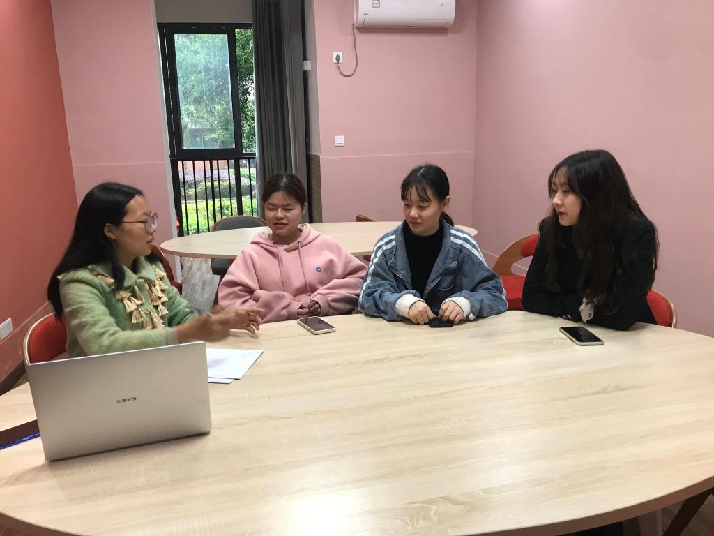 在交流中,张红老师总是先介绍本次交流的目的、意义及期待,以轻松愉悦的方式打开同学们第一次交流的尴尬,同时,认真记录各位同学的信息,为制作同学们的成长档案增加信息库资源。