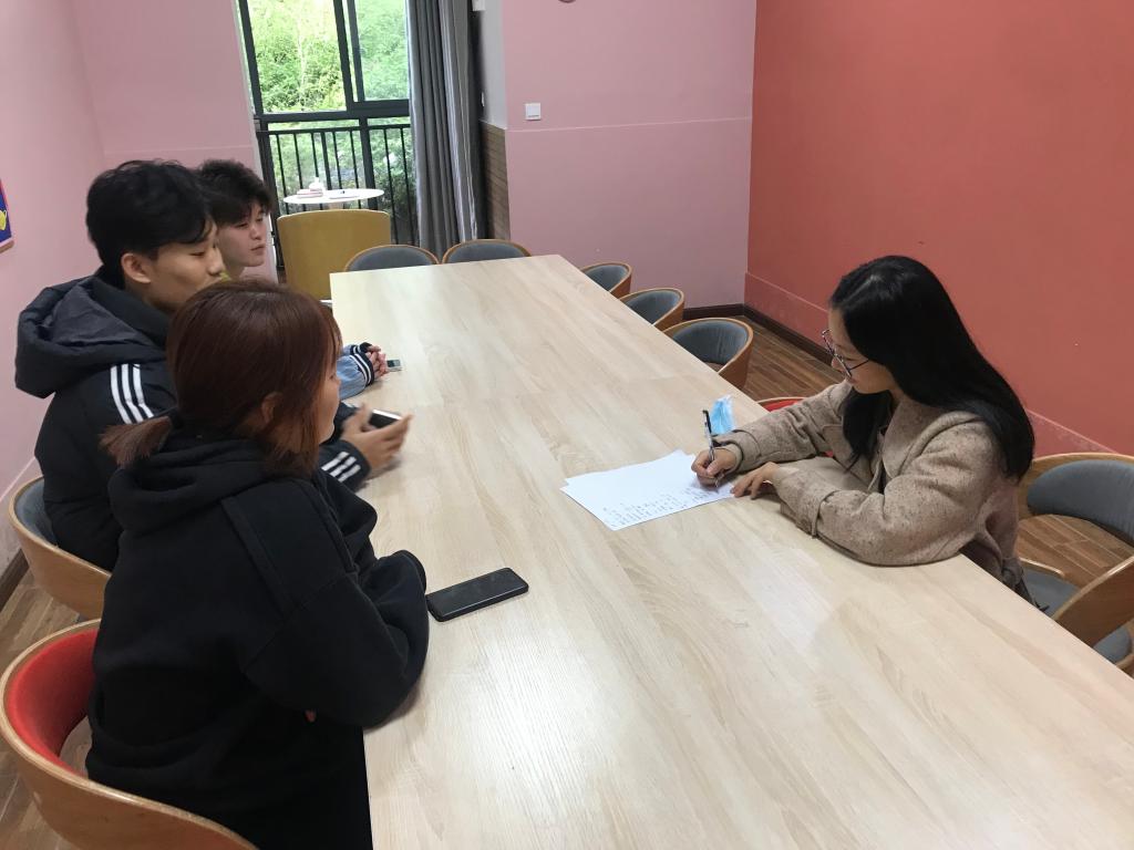 通过“一对一、面对面”的交流,了解到本组同学大部分都是重庆相关院校来到移通的,也有云南、贵州、新疆等地的同学是因为喜欢重庆,而选择了移通。专业背景涵括财务、工商、会计、高尔夫、城市轨道交通、市场营销、物流、酒店管理、空乘、电子商务等方向。还了解到本组同学兴趣特长广泛,有组建乐队的、主创音乐的、会弹吉他、钢琴、魔方、动漫、玩游戏,更有喜欢烘焙、专业学习过美术、运动健将等。