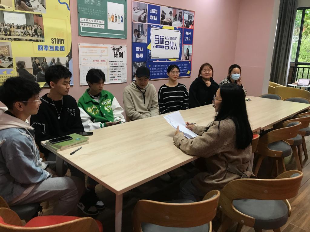 一对一交流活动,气氛轻松愉悦,就像是好朋友之间的茶话会。首先第一眼就看到了亲切的老师,然后我们依次简单介绍自己,讲述兴趣爱好、开心的事以及烦恼,老师与我们分享自己的经历想法,也会耐心地讲解我们的问题,传授自己的经验。感觉老师交涉很广,对于任何事情,老师都有自己的见解,很清楚自己想要做什么。有那么一句话:听君一席话,胜读十年书。