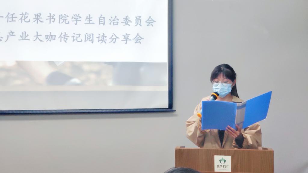 为积极响应“信息产业大咖传记”阅读计划,鼓励同学们乐思好学广泛阅读,营造良好的阅读氛围,花果书院于2022年4月28日 12:00在花果书院多功能活动室开展以“拓视野.展未来”为主题的二届一任花果书院学生自治委员会信息产业大咖传记阅读分享会,引导同学们在阅读中探索商科思维,启发学习、生活,尽快找到自我定位并对未来做出合理规划。